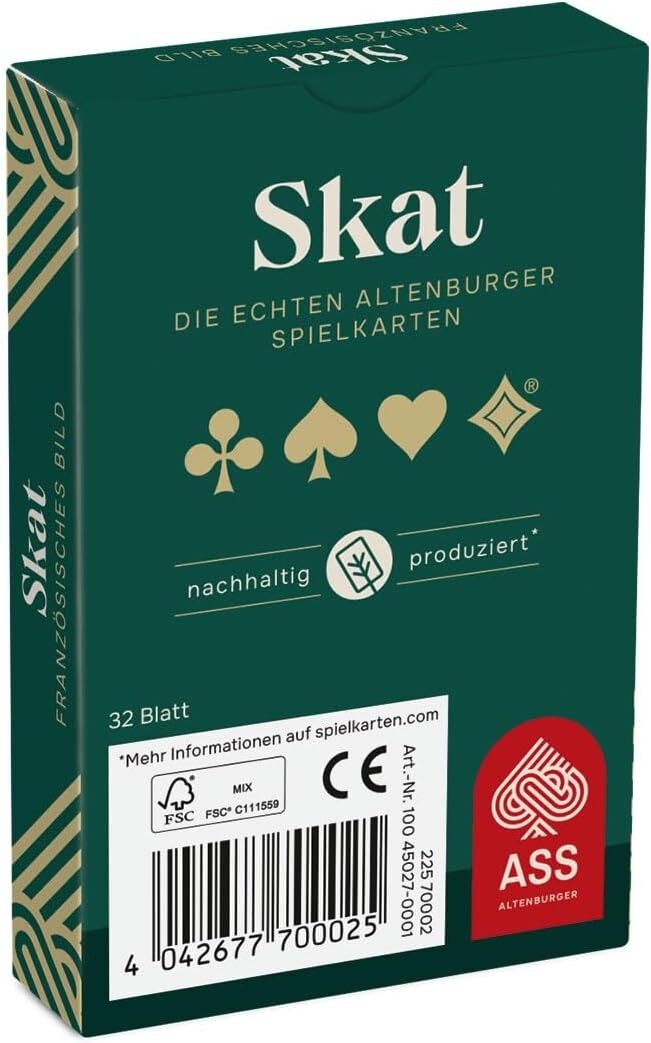 Skat, französisches Bild in Faltschachtel ASS Altenburger ist das älteste bekannte Unternehmen in der Entwicklung und Produktion von Spielkarten in ganz Europa. Ganz nach dem Motto: Ein Herz für Kartenspiele - seit 1765. Wir entwickeln und optimieren unsere Pr...