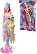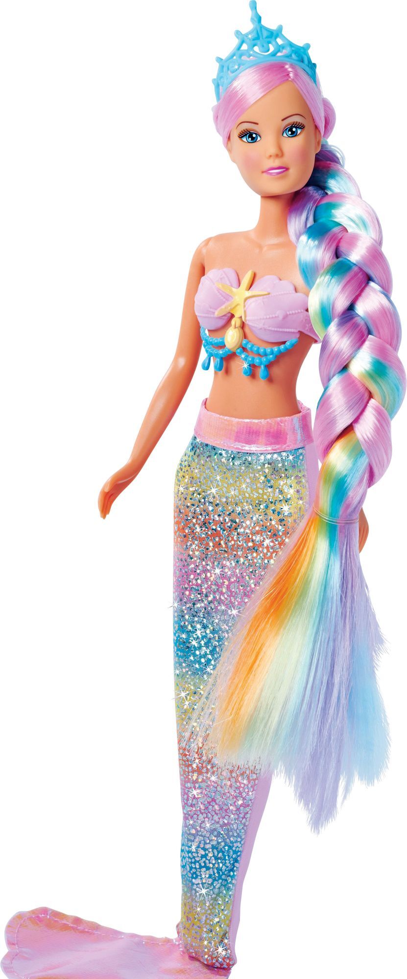 Steffi als Regenbogen Meerjungfrau mit bunten Haaren, Haarclips, Kamm und abnehmbarer Flosse, 29cm, WB, 3J+