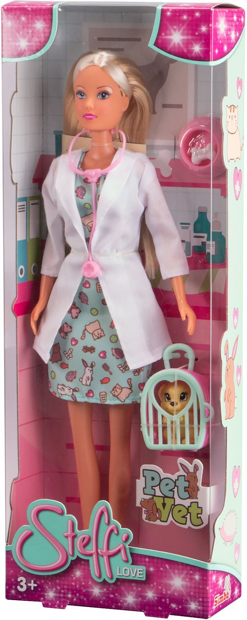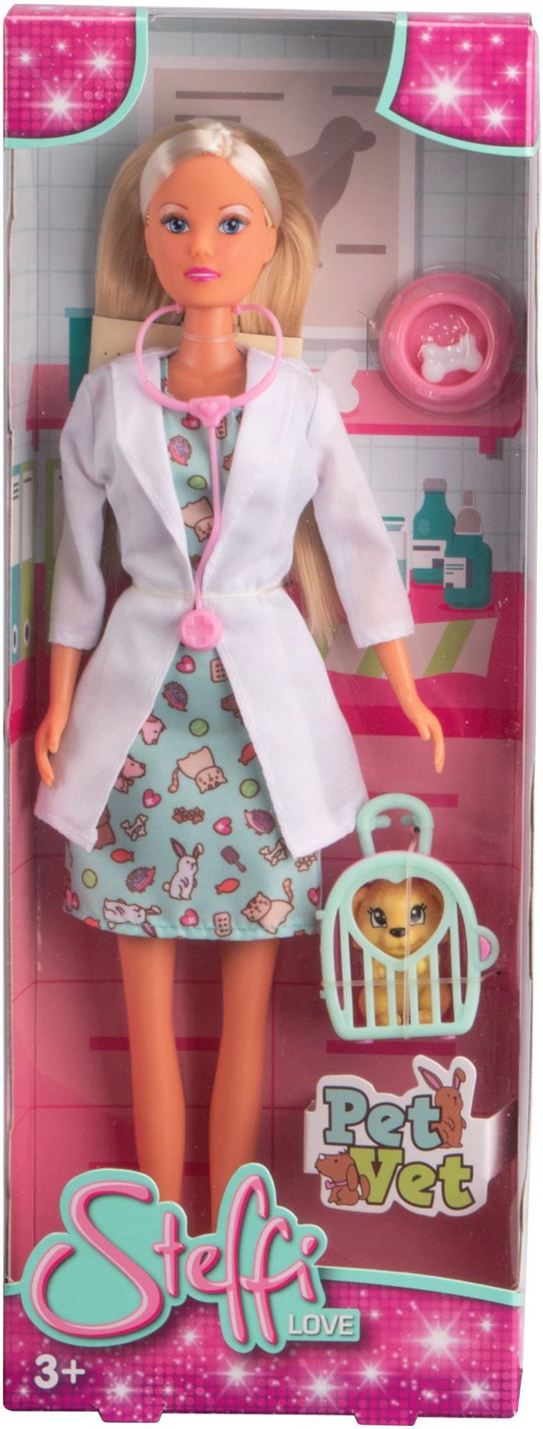 Steffi als Tierärztin, kümmert sich um einen kleinen Hund, inkl. Tragetasche, Napf und Knochen, 29cm, WB, 3J+
