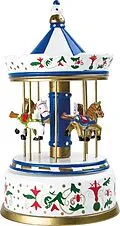 Jahrmarktsliebhaber werden bei dieser Spieluhr aus Holz begeistert sein. Die Schicksalsmelodie ertönt nach dem Aufziehen und lässt die Pferdchen tanzen. So kommt diese Spieluhr seinem großen Original schon sehr nahe. Maße: Höhe: ca. 28 cm, ca. 16 cm Material: ...
