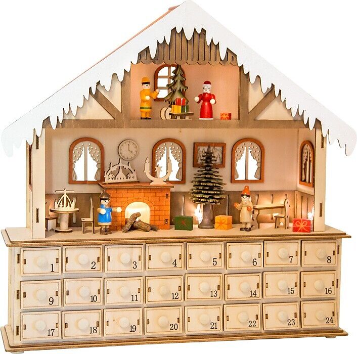 In der weihnachtlichen Puppenstube ist es richtig gemütlich. Nicht nur die kleinen Schubläden ziehen ihre Aufmerksamkeit auf sich, sondern auch die filigran gearbeitete Stube aus Holz mit vielen tollen Details und Figuren. Die Beleuchtung gibt ein schönes, woh...