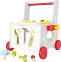 Handwerker aufgepasst! Mit diesem Lauflernwagen und dem zahlreichen Zubehör aus robustem, teilweise lackiertem, Holz ist jede Menge Spielspaß garantiert. Nicht nur das Laufen lernen, auch erste handwerkliche Drehs und Kniffe können mit vielfältigen Spielmöglic...