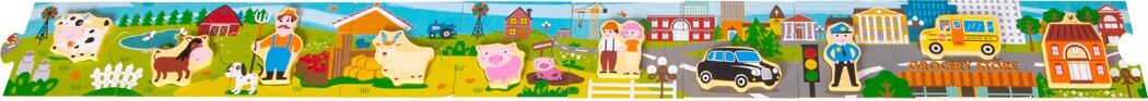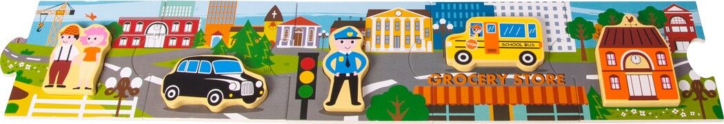 Komm, wir gehen in die Stadt! Das Puzzle besteht aus fünf großen Holzteilen, die schnell zusammengelegt sind doch damit nicht genug! Denn jedes Teil ist zugleich ein Setzpuzzle, in das zusätzliche Holzteile gelegt werden können. So fördert das Legespiel nicht ...