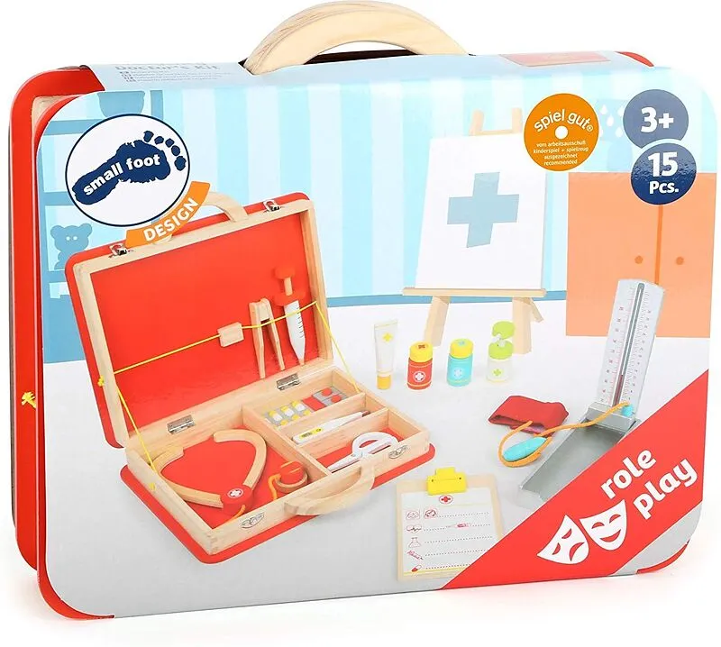 Notarzt-Koffer aus Holz Inkl. Zubehör wie Stethoskop, Fieberthermometer und Spritze Trendiger Arztkoffer für kleine Mediziner. Mit diesem Arztkoffer aus Holz werden Akutfälle im Kinderzimmer behandelt. Die zahlreichen Utensilien lassen keine Wünsche offen. Spr...