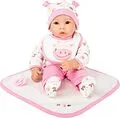 Puppe Hanna ist einfach zum Gernhaben. Maße: Puppe ca. 15 x 10 x 40 cm, Decke ca. 27 x 27 cm Besondere Merkmale: Artikel mit Klettfunktion Inhalt: 1 Puppe, 1 Langarmshirt, 1 Hose, 1 Paar Schuhe, 1 Mütze, 1 Lätzchen, 1 Decke, 1 Schnuller. Einzigartiges Design m...