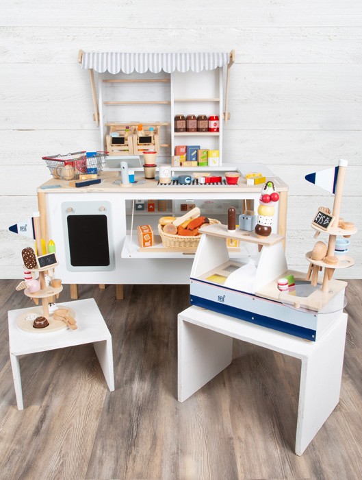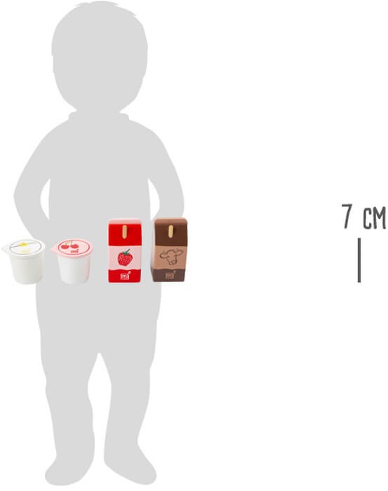Aus dem Kühlregal in den Einkaufswagen! Diese vier Milchprodukte aus Holz sind die ideale Ergänzung für die Kinderküche oder den Kaufmannsladen. Neben einer Erdbeermilch sind auch ein Kakao mit Strohhalm sowie zwei leckere Joghurts in den Sorten Kirsche und Va...