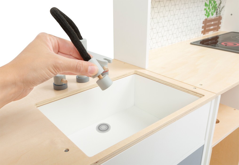Küchenmeister aufgepasst! Diese große, umfangreich ausgestattete Kinderküche bietet mit Herd, Spülbecken, Wasch-/Spülmaschine, Mikrowelle, Kühlschrank und Backofen alle Geräte eines modernen Haushalts. Dank modularem System kann sie als Eckküche, Küchenzeile o...