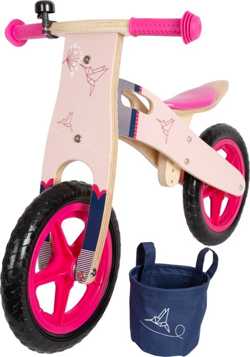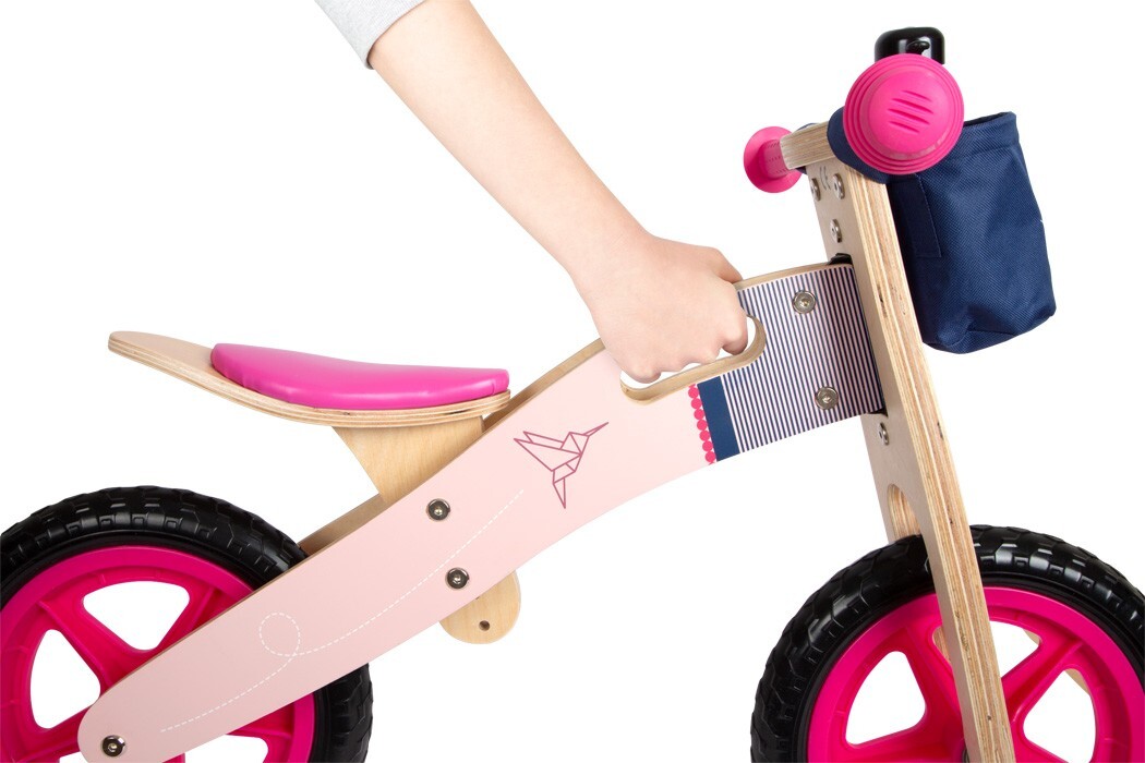 Schnell wie ein Kolibri! Mit gradlinigem Design, dem dezenten Origami-Kolibri und Akzenten in Pink und Rosa begeistert dieses Laufrad aus Holz kleine Bikerinnen. Dank 3-fach höhenverstellbarem Sattel wächst das Laufrad mühelos mit. In der abnehmbaren Lenkertas...