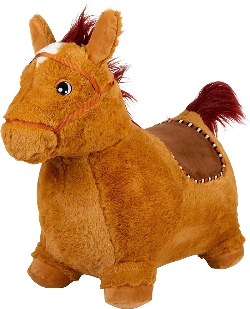 Hüpfen, springen, reiten! Dieses kuschelweiche Hüpfpferd kombiniert einen robusten Gummikörper mit flauschig-weichem Plüschfell. So macht das Reiten mit dem beliebten Hüpftier noch mehr Spaß! Für realitätsnahes Spielvergnügen sorgen die weiche Mähne, der Schwe...