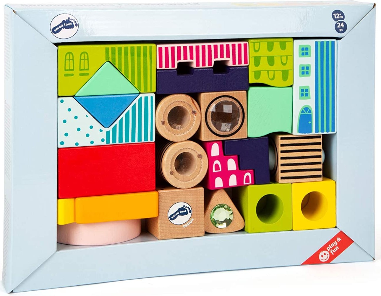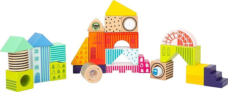 Perfekt zum Stapeln, Stauen und Entdecken! Fantasiebausteine aus Holz sorgen schon bei den Allerkleinsten für Begeisterung. Spannende optische und haptische Effekte, Rasseln, Prismen, kunterbunte Farben und Formen, Glitzersteine und ein beweglicher Zug regen d...