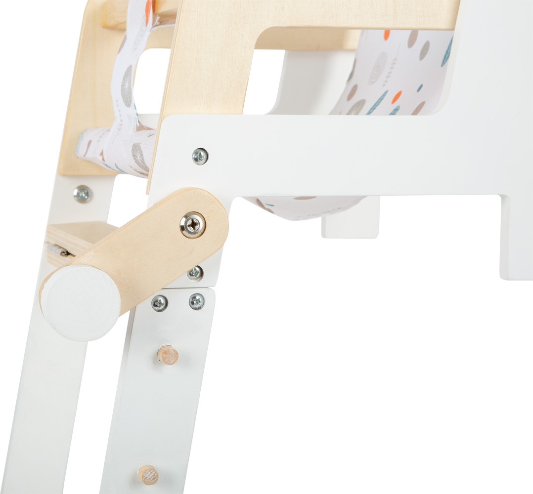 Ein perfekter Kombihochstuhl! Dieser multifunktionale Puppenhochstuhl überzeugt große und kleine Puppeneltern mit skandinavisch-schlichtem Design und hochwertiger Verarbeitung. Mit wenigen Handgriffen ist der Hochstuhl kinderleicht in eine Stuhl-Tisch-Kombinat...