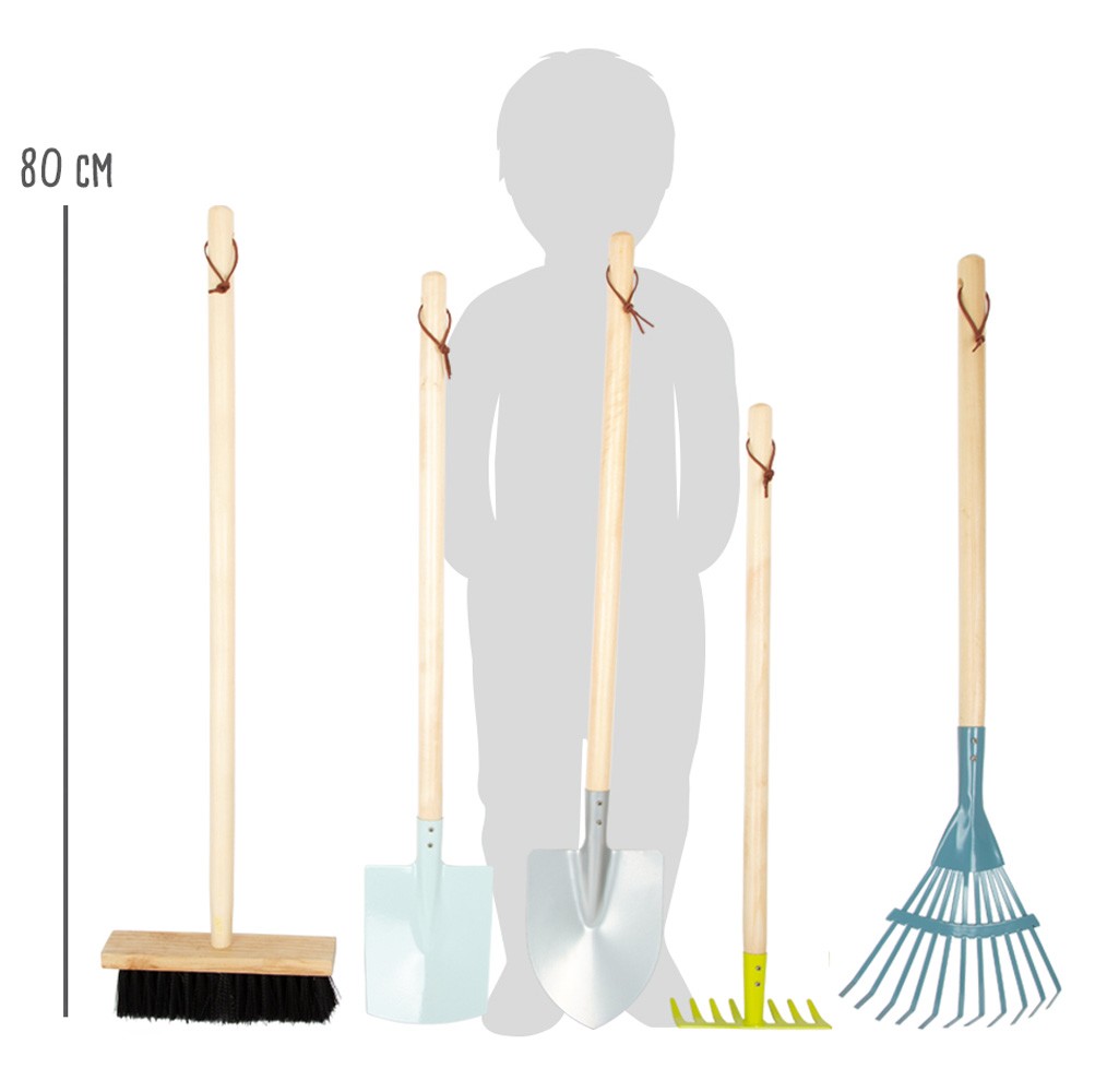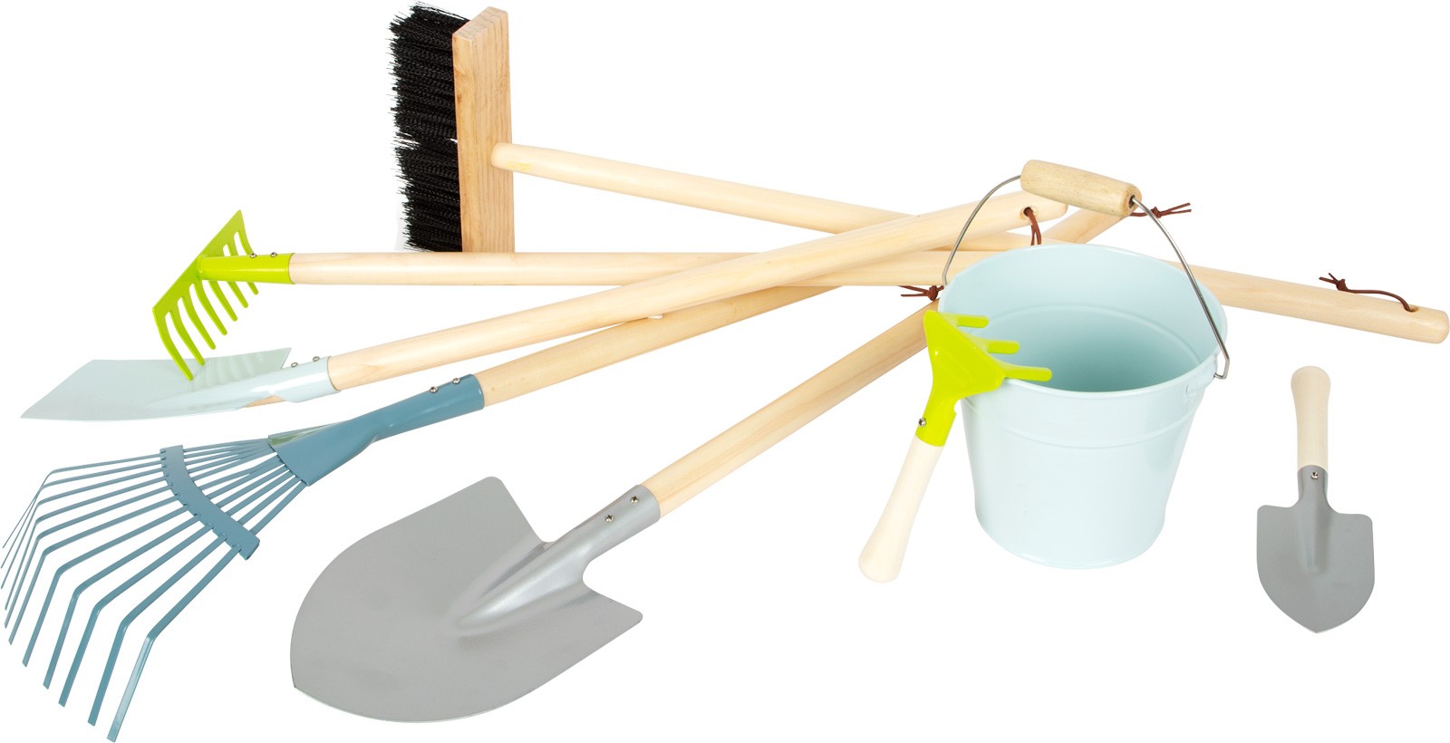 Dieses umfangreiche Gartenwerkzeug-Set in modernen Farben besteht aus Spaten, Schaufel, Rechen, Harke, Besen, Eimer und zwei kleinen Gartengeräten und bietet für jede Tätigkeit das passende Equipment. Nach der Arbeit können die Werkzeuge aus robustem Holz und ...