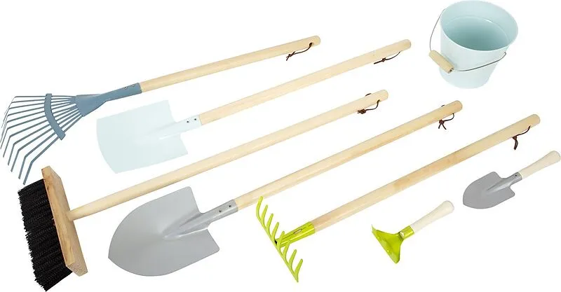 Dieses umfangreiche Gartenwerkzeug-Set in modernen Farben besteht aus Spaten, Schaufel, Rechen, Harke, Besen, Eimer und zwei kleinen Gartengeräten und bietet für jede Tätigkeit das passende Equipment. Nach der Arbeit können die Werkzeuge aus robustem Holz und ...