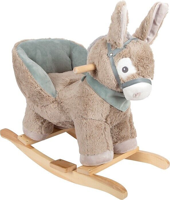 Kuschelweich und bequem! Dieser Schaukelesel aus Plüsch ist mit seiner stabilen Holzkonstruktion ein treuer Begleiter, der durch sein weiches Fell und das freundliche Gesicht zum Kuscheln einlädt. Der gepolsterte Sitz in Sesselform mit Rückenlehne sorgt bei kl...