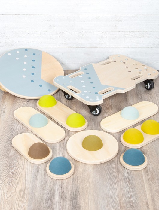 Dieses stabile Balancierbrett aus Holz verknüpft Bewegungstraining mit Spaß! Durch die zwei in verschiedenen Positionen einschraubbaren Holzkugeln auf der Unterseite des Bretts ist der Schwierigkeitsgrad individuell anpassbar. Körperspannung und Balance werden...