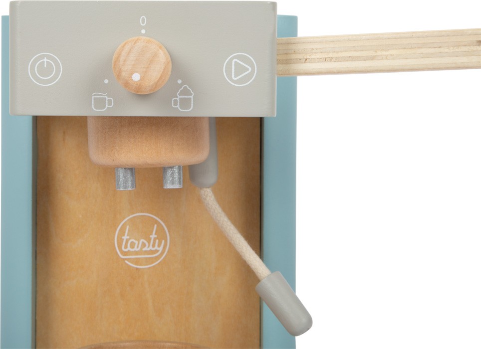 Für die Barista der Kinderküche! Dieses Komplett-Set aus Holz umfasst neben der modernen Kaffeemaschine zwei Kaffeecoins und Coffee-to-go-Becher, eine Zuckerdose mit Deckel/Löffel sowie ein Milchkännchen mit Milchschaumhauben. Für realistischen Spielspaß sorge...