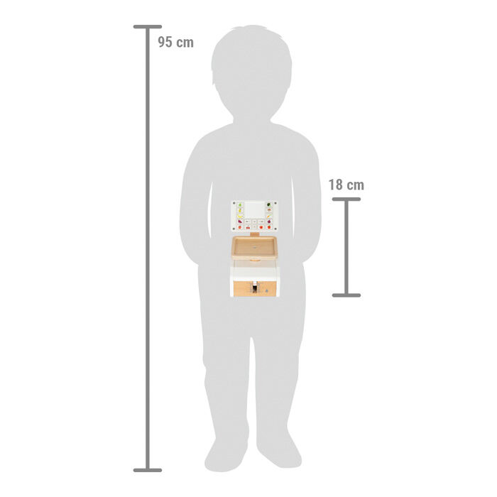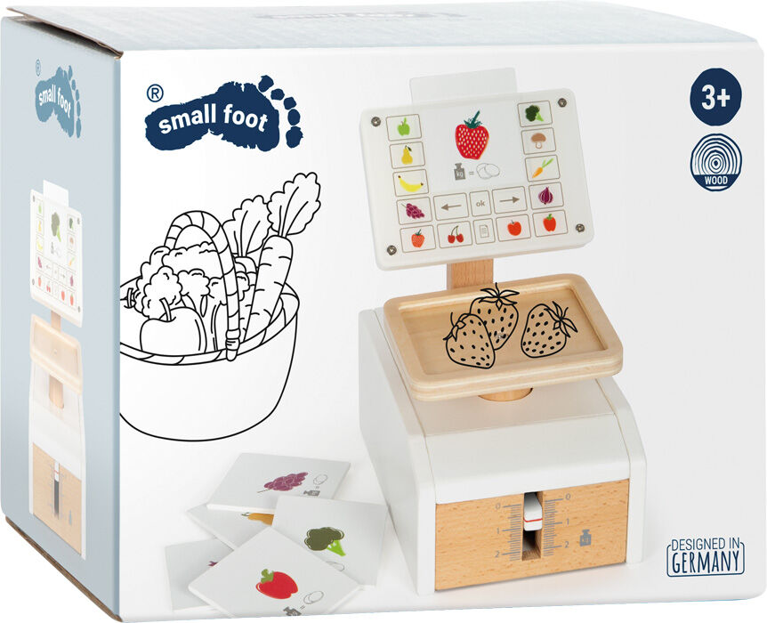 Abwiegen wie im Supermarkt! Diese Kinderwaage aus Holz mit großer Wiegefläche ist das richtige Zubehör, um im Kaufladen oder in der Kinderküche Spiellebensmittel abzuwiegen. Dabei sorgt der integrierte Federmechanismus für ein besonders realistisches Spielverg...