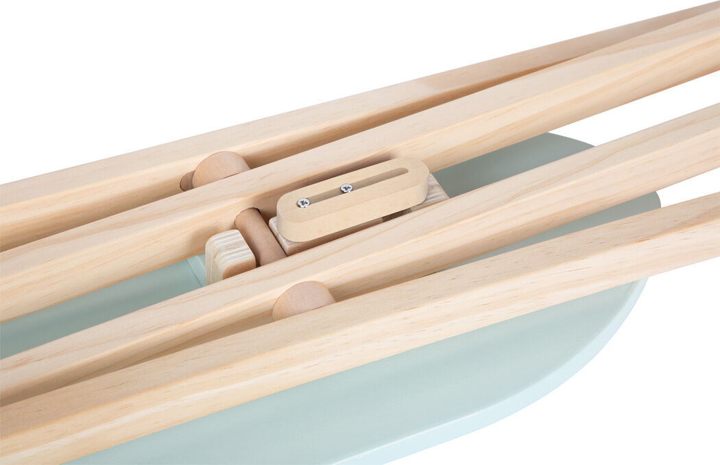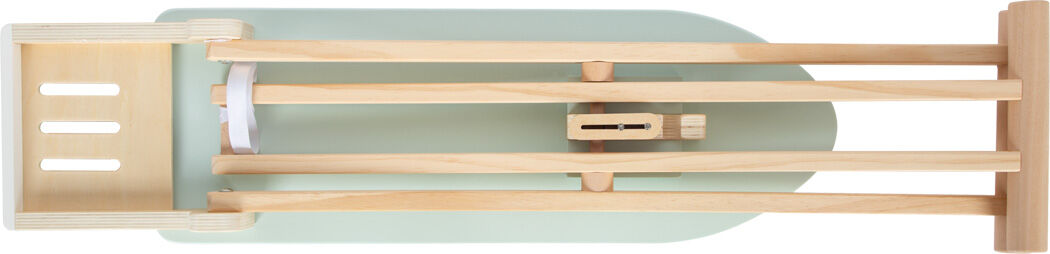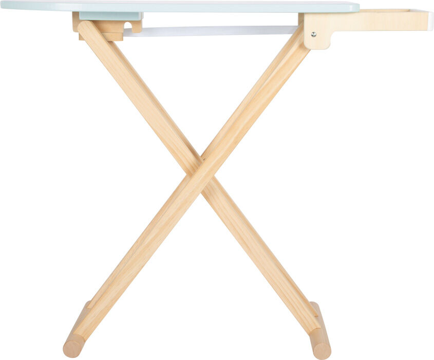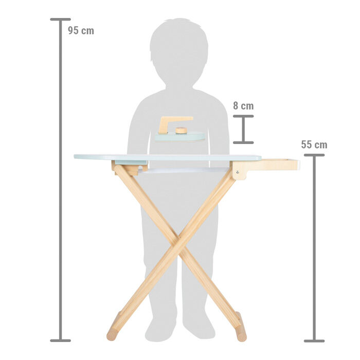 Bügeln wie die Großen! Ausgestattet mit einer Bügeleisenablage, einem aufgedruckten Bezug und einem Sicherheitsriegel für einen festen Stand, lässt das Bügel-Set bestehend aus Bügelbrett und Bügeleisen aus Holz keine Wünsche offen. Ein Drehregler mit Klickgerä...