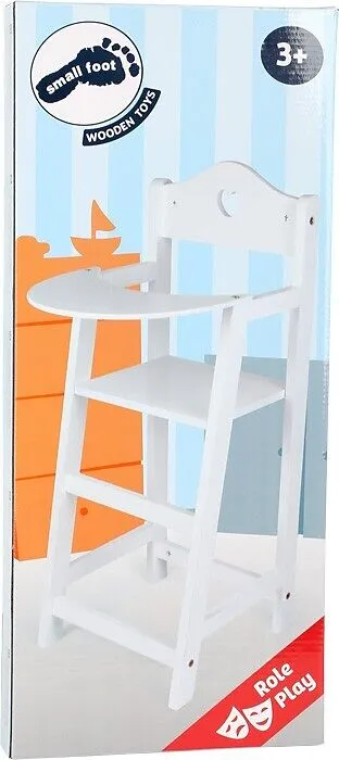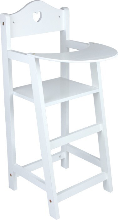 Dieser schlichte Hochstuhl aus Holz lässt Puppenherzen höher schlagen! Weiß lackiert und mit kleinem Herzausschnitt versehen, ist er eine stilvolle Ergänzung für die Puppenausstattung. Durch den reduzierten Stil passt sich der Hochstuhl ideal in die Kinder- od...