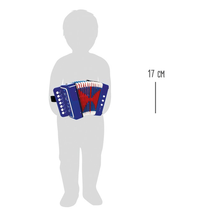 Spielen wie zu Großmutters Zeit! Mit diesem blauen Akkordeon können Kinder erste musikalische Erfahrungen sammeln und nach Herzenslust musikalisch kreativ werden. Seitliche Schmetterlinge sind ein extra Blickfang und lassen das Kinder-Instrument noch interessa...
