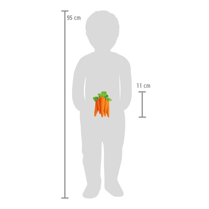 7er Set. Diese Filz-Möhren bereichern jeden Gemüsestand und sind ein gesunder Hingucker im Tante Emma-Laden. Auch geeignet als Accesoire für das Rollenspiel rund um Pferde, Ponys und Bauernhof. Das ideale Zubehör für die Kinderküche und den Kaufladen. Maße cm:...