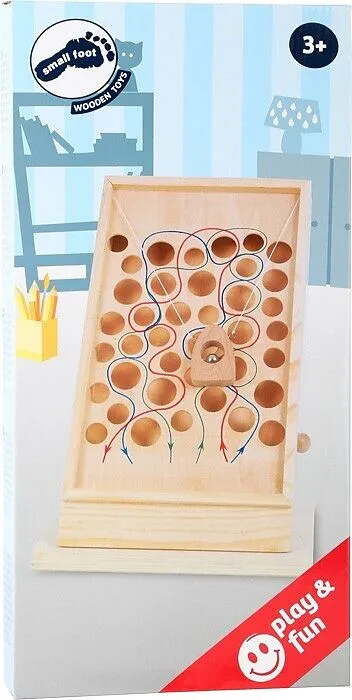Welche Kugel schafft es ans Ziel? Bei diesem Geschicklichkeitsspiel aus Holz sind Konzentration und Geschick gefragt! Hier müssen die Kinder die Bänder fest im Griff haben, um das Holzschiffchen samt Kugel sicher auf den farbigen Pfaden an den Löchern vorbei z...