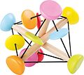 Drei Holzstangen sind mit Gummibändern verbunden. So können sie beliebig gedreht und gezogen werden. Für die kleinen Hände eine sportliche Herausforderung. Die bunten Schiebeelemente klappern beim Schütteln. Maße: ca. 13 x 13 x 13 cm Material: Holz, Stoff Alte...