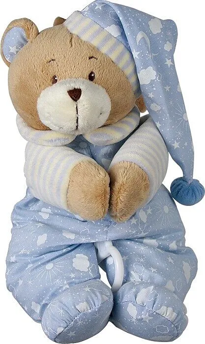 Sanfte Träume bringt das weiche Bärchen im blauen Schlafanzug! Beim Abspielen wünscht er seinen Zuhörern Guten Abend, gute Nacht! Zum Aufhängen sind zwei weiche Bänder angenäht. Maße: ca. 28 x 14 x 14 cm Material: Plüsch, Stoff, Kunststoff Artikel mit Geräusch...