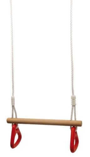 Hier können kleine Akrobaten ihre Kraft und Geschicklichkeit trainieren! Ein starkes Holz (45 x 4,5 cm) dient als Sitz- und Turnstange, stabile Kunststoffgriffe (15 x 14 cm) geben Halt bei den Turnübungen! Das Kunststoffseil ist mit Metallringen zum Aufhängen ...