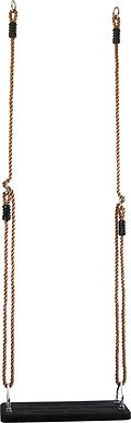 Auf die Schaukel, fertig, los! Diese stabile Schaukel ist der absolute Klassiker für den Garten. Das große Sitzbrett besteht aus witterungsbeständigem Hartgummi. Aufgehängt ist die Schaukel an tragfähigen Kunststoffseilen, die über geschraubte Metallbügel am S...