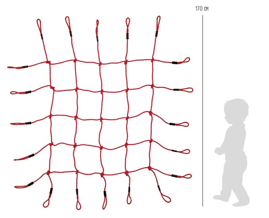 Kletteraffen aufgepasst! An diesem Netz aus robustem Kunststoffseilen wird jedes Kind zum Abenteurer. Hier trainieren die Kinder ihre Kraft und Ausdauer und schulen ganz nebenbei ihre Koordination.Wer ist als erstes oben? Maße: ca. 170 x 170 cm, Maschenweite c...