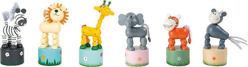 Jetzt wird gezappelt! Durch Drücken des Bodens werden diese fröhlichen Afrika-Tiere lebendig. Immer neue, lustige Bewegungen entstehen durch unterschiedlich starkes Drücken und Verlagerung des Druckpunktes. Ein herrlicher Wackelspaß zum Spielen, Sammeln und Ve...