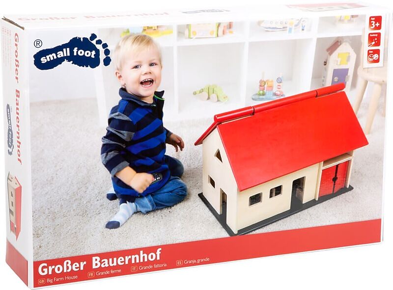Ein Bauernhof der Extraklasse! In diesem großen Bauernhaus ist Platz für viele Tiere. Schwingtore und ein aufklappbares Dach lassen diesen Hof ganz leicht Bespielen. So können kleine Landwirte auch ganz einfach von oben in den Bauernhof greifen und die Tiere p...