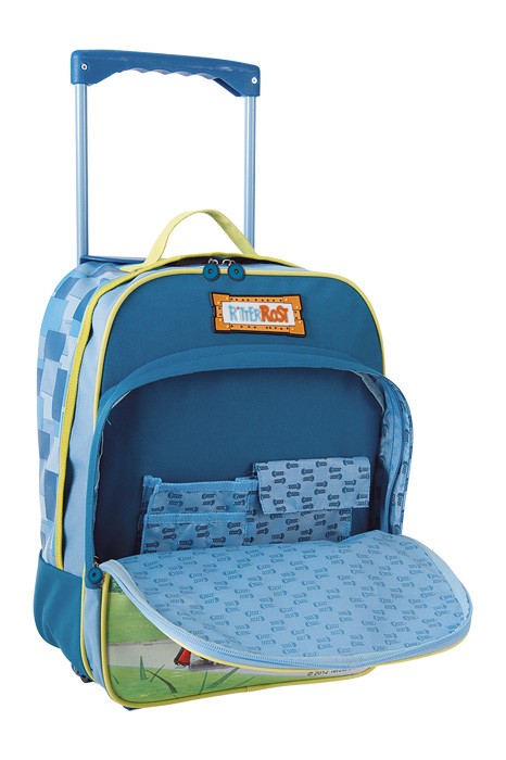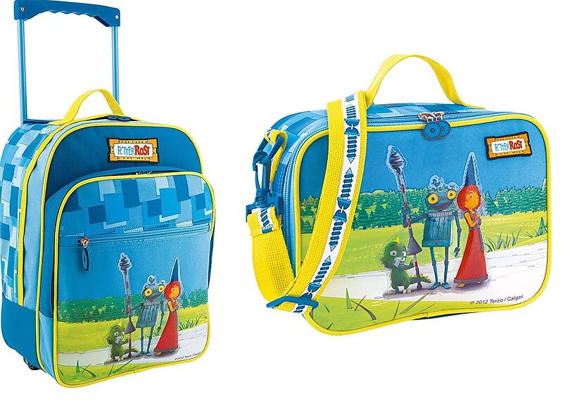 Ritter Rost und seine Freunde zieren diesen praktischen Reisegefährten mit Teleskopgriff und Rollen! Das geräumige Hauptfach mit 2-Wege-Reißverschluss! Ein Adressanhänger weist den Besitzer aus und in der Fronttasche bewahren kleine Einstecktaschen einige Klei...