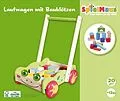 SpielMaus Holz Laufwagen mit 20 Bauklötzen. Der Laufwagen unterstützt Babys bei ihren ersten Gehversuchen. Schubhöhe ca. 39 cm. Maße ca. 29x26x39 cm. Für Kinder ab 12 Monaten.