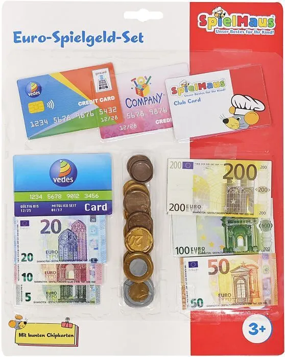 Inklusive 55 Teile. Eine optimale Ergänzung für die Kaufladenkasse. Auf Blisterkarte. Für Kinder ab 3 Jahren.