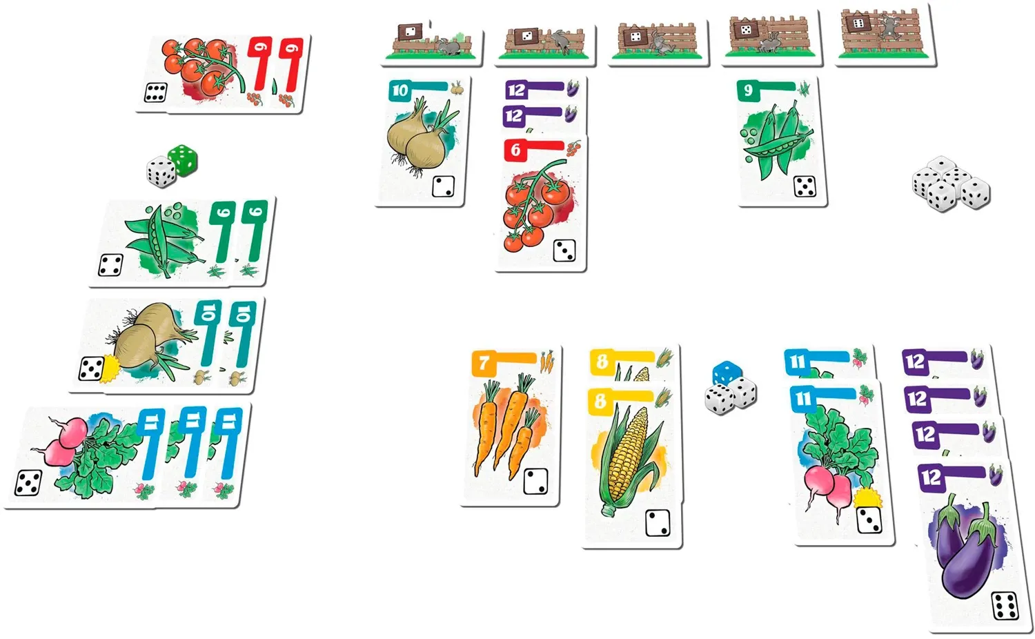 Die Spielenden möchten als Hasen saftiges Gemüse klauen. Dafür müssen sie über den Zaun von Bauer Benno springen. Wer hoch genug würfelt und damit hoch genug springt, schafft es über den Zaun. Wer stoppt und abwartet, kann dagegen Würfel sammeln. Inhalt Inhalt...