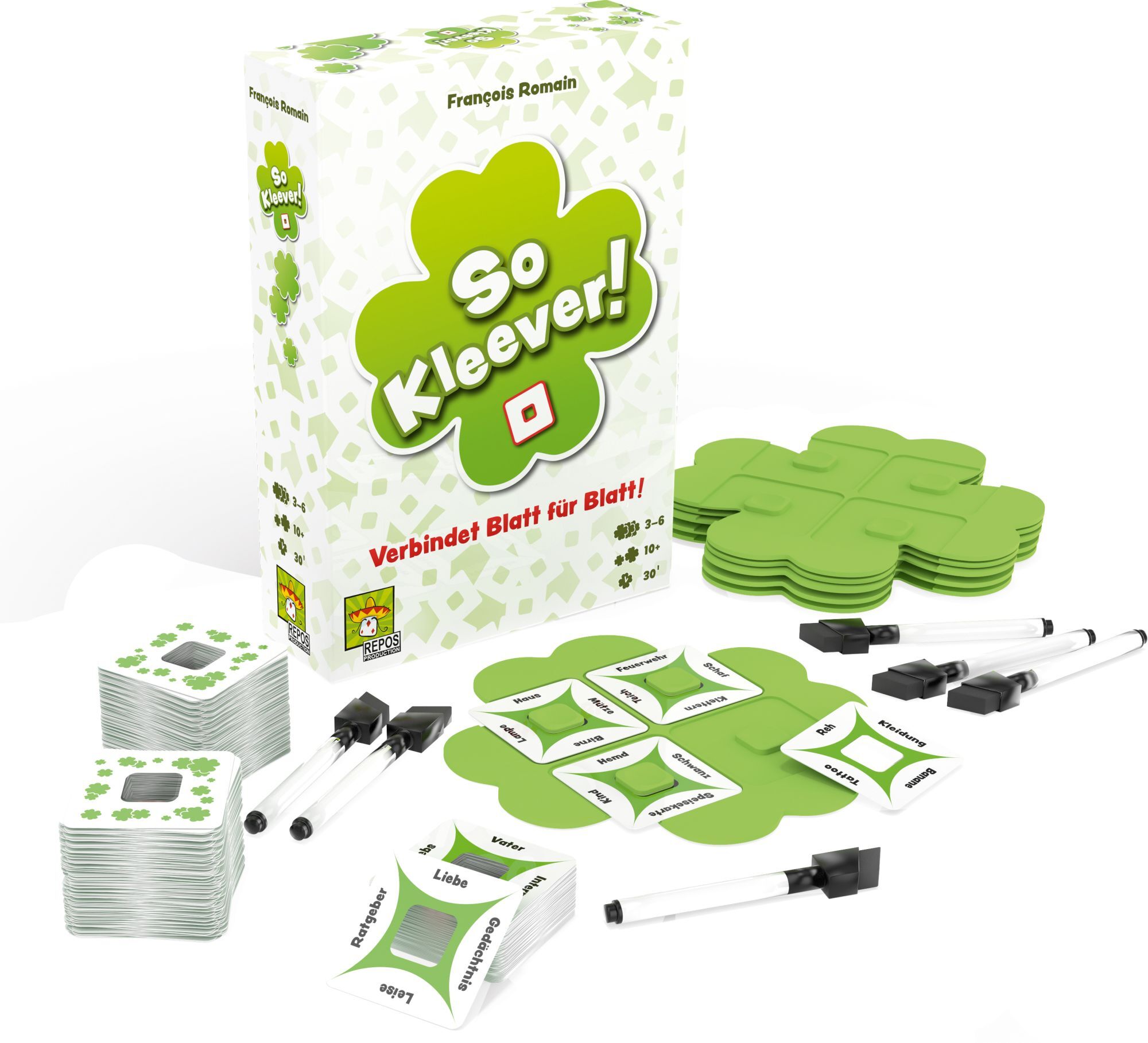 REPOS So Kleever! In ''So Kleever!'' arbeiten die Spieler gemeinsam daran, verschiedene Aufgaben zu lösen. Dabei müssen sie Hinweise kombinieren, um die richtige Lösung zu finden. Das Spiel ist kooperativ, d.h. die Spieler gewinnen oder verlieren gemeinsam....