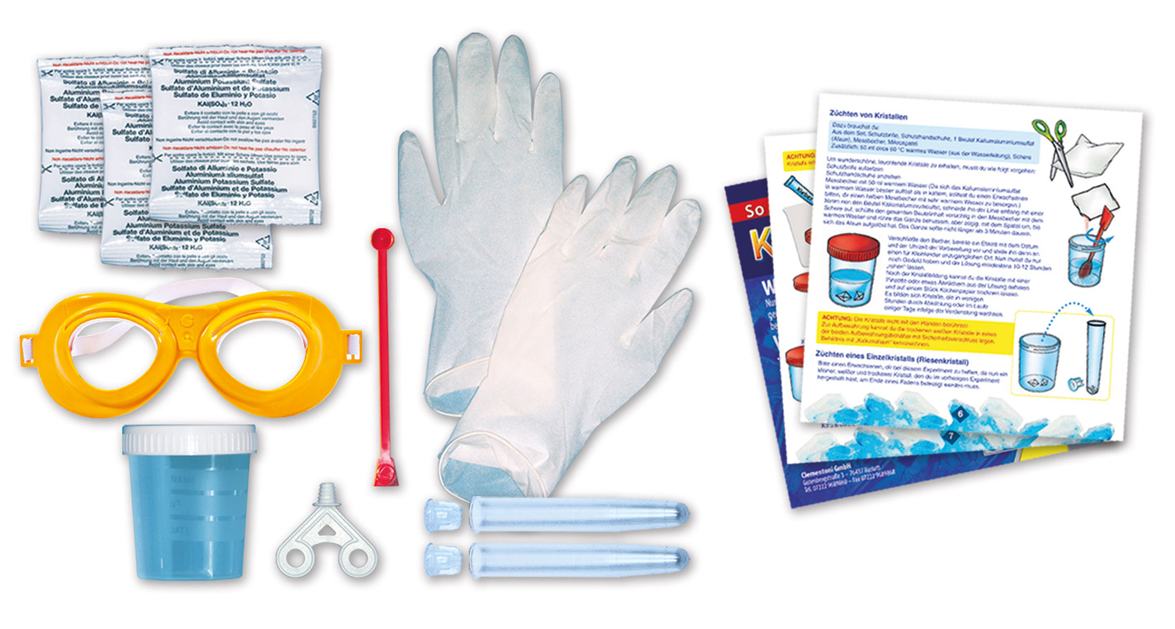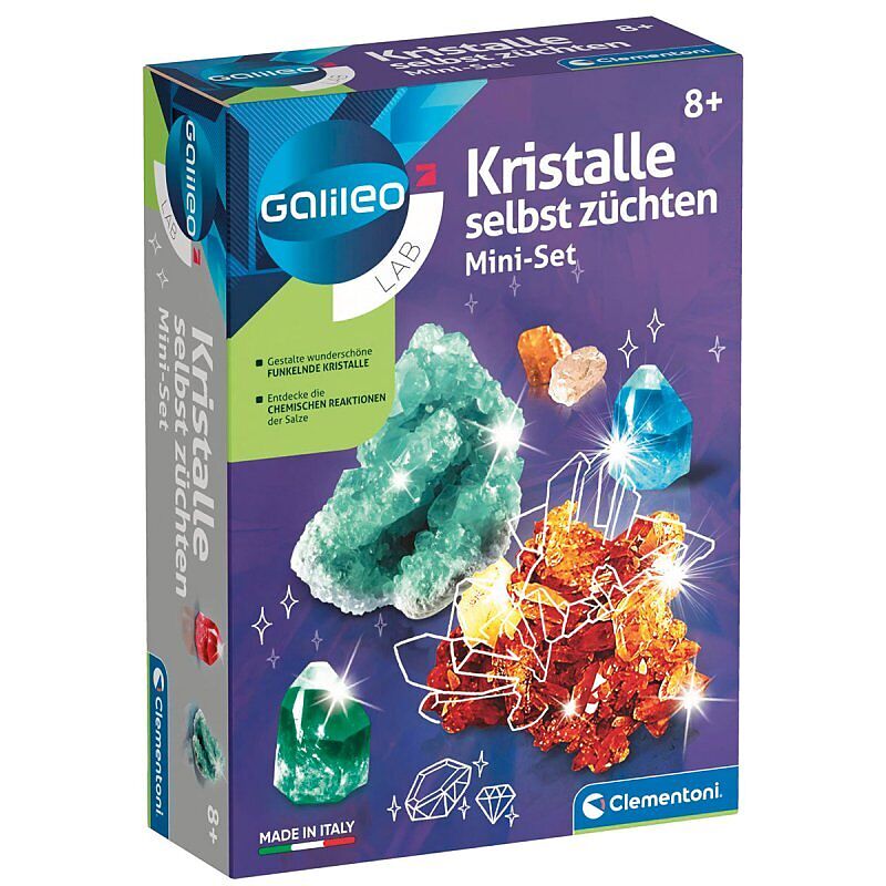 Clementoni Galileo - Kristalle Mini Set GALILEO Kristalle Miniset. Mit diesem kompakten Experimentierset können wundervolle Kristalle hergestellt werden. Inhalt: drei Beute l mit Kaliumaluminiumsulfat, 100 ml Messbecher aus Kunststoff, eine Schutzbrille aus Ku...