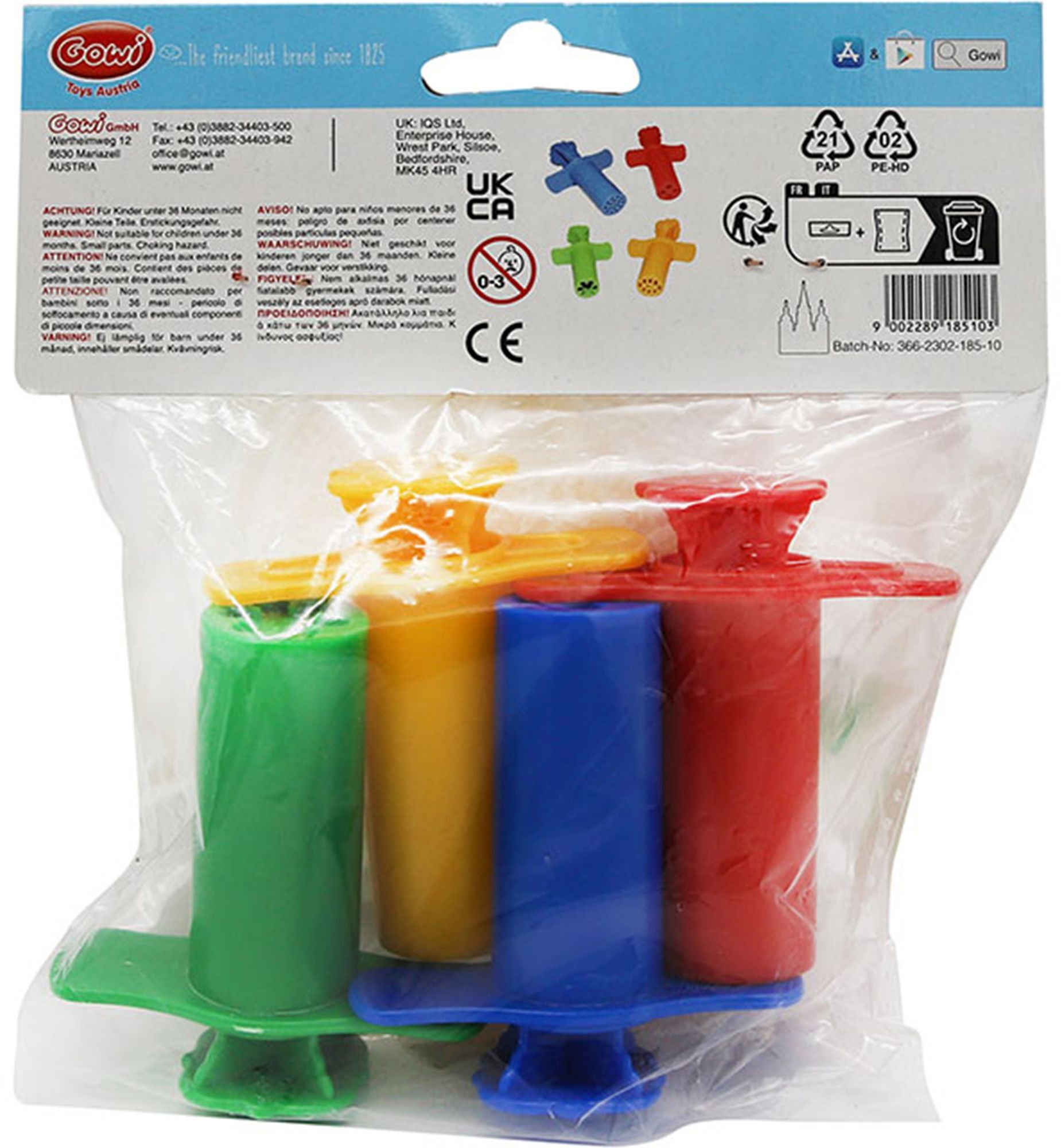 Gowi Knetspritzen Set 4 tlg. Diese bunten Knetspritzen sind bestens dazu geeignet, um der Kreativität von Kindern ab 3 Jahren und dessen Feinmotorik zu fördern. Das Set besteht aus 4 verschiedenen Knetspritzen, die verschiedene Formen der Knetmasse hervor brin...
