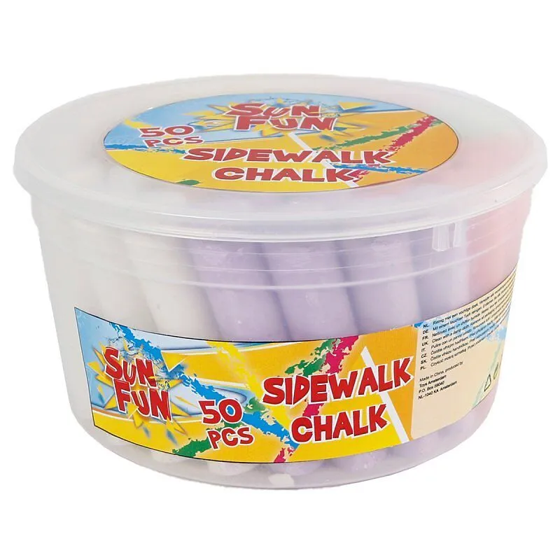 50 Strassenmalkreide (8x6 Farben) im praktischen Kessel. Damit entstehen wahre Meisterwerke. Inhalt: 6x pink, 6x blau, 6x grün, 6x gelb, 6x orange, 6x rot, 6x violett, 8x weiss.
