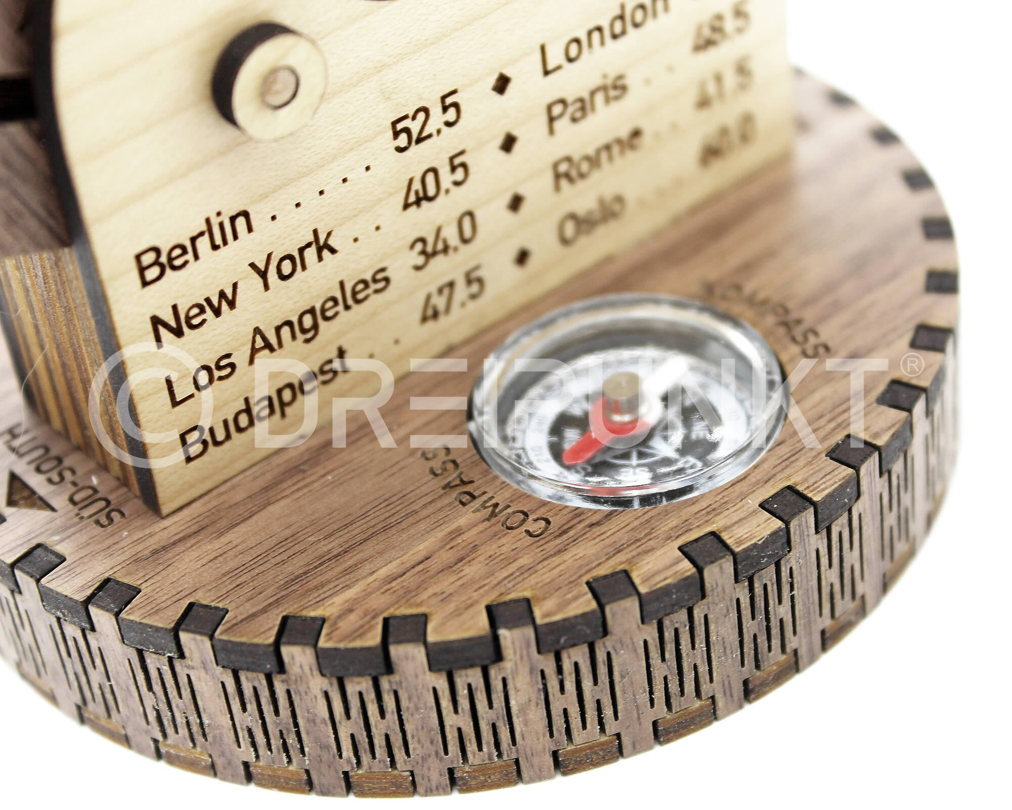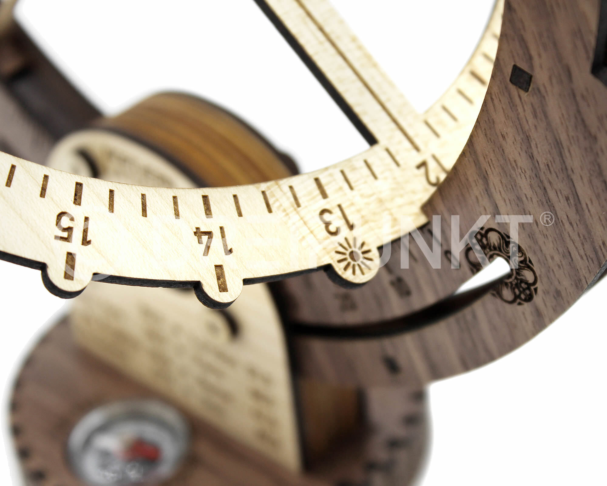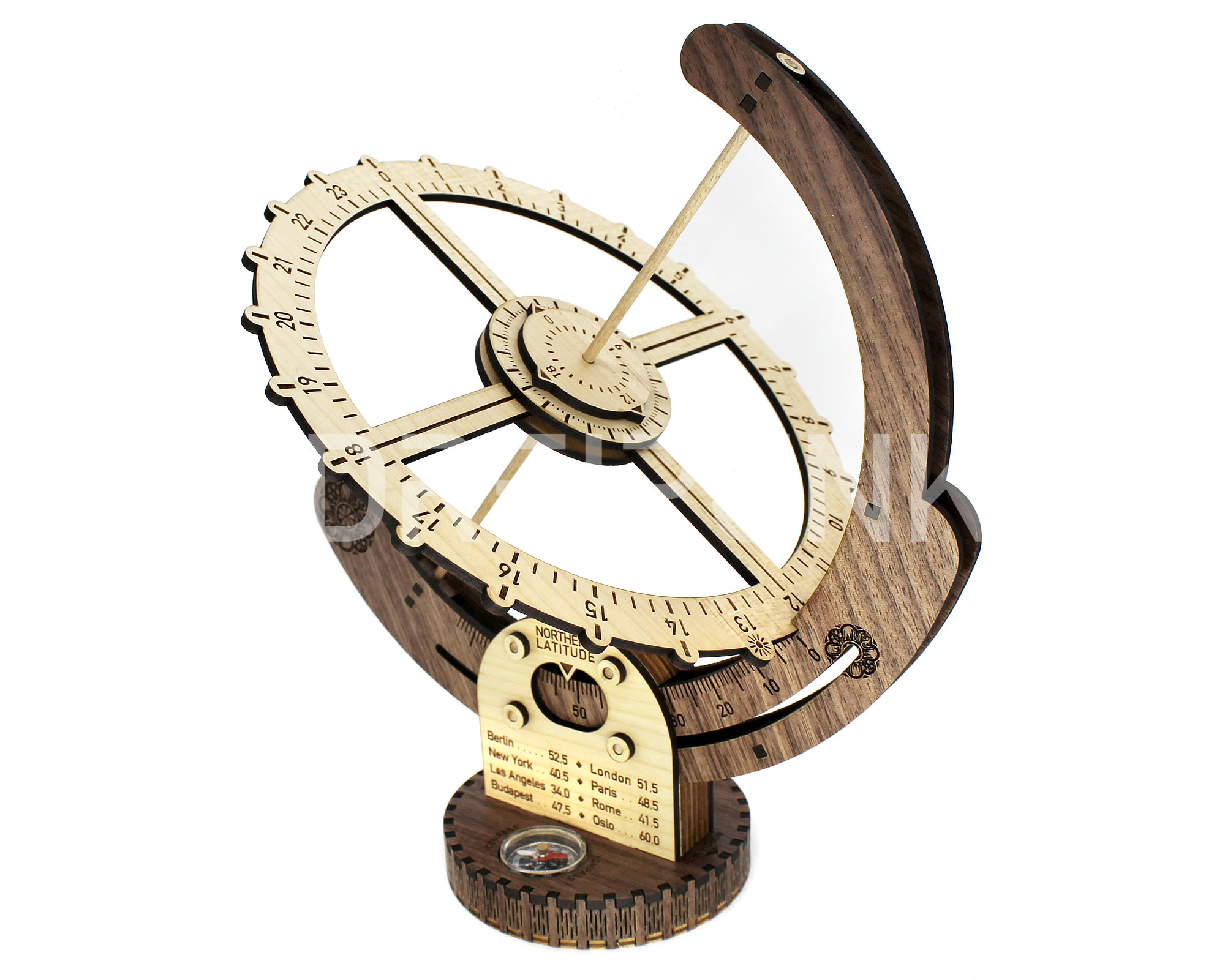 Sonnenuhren sind seit der Antike in Gebrauch. Sie zeigen die Zeit mit Hilfe eines Schattenwurfs auf einer Uhrzeitskala an. Diese moderne Sonnenuhr aus lasergeschnittenem Pappel-Sperrholz ist mit Hilfe einer ausführlichen Bauanleitung einfach zusammenzubauen. P...