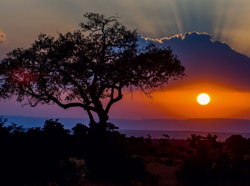 Sonnenuntergang in der Masai Mara in Kenia (Puzzle)