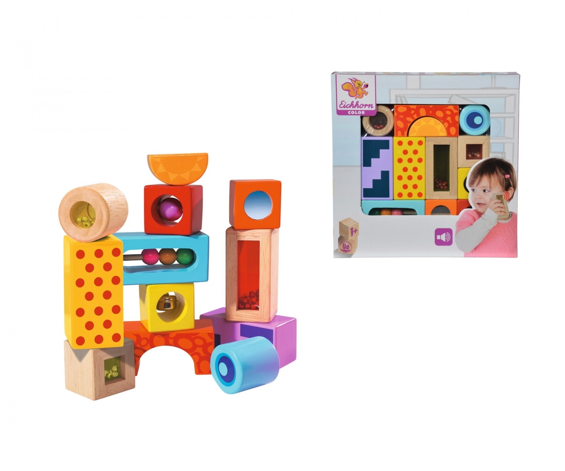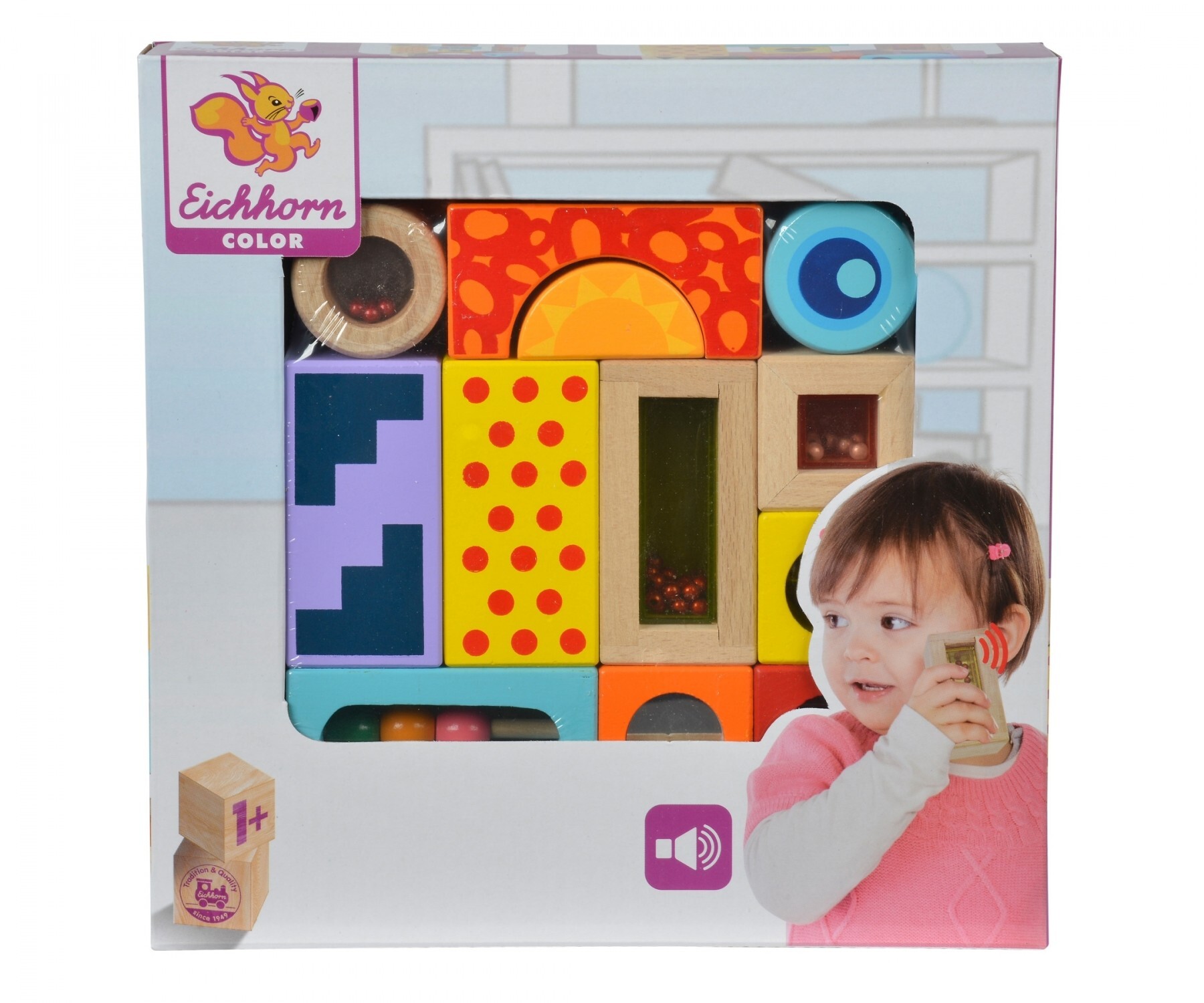 Die 12 Soundbausteine von Eichhorn Color gibt es in verschiedenen Farben und Formen. Die Steine sind jeweils mit Kügelchen, einem Glöckchen oder anderen Dingen bestückt. Dadurch wird die Akustik, Motorik und die Hand-Augen-Koordination Ihres Kindes gezielt gef...