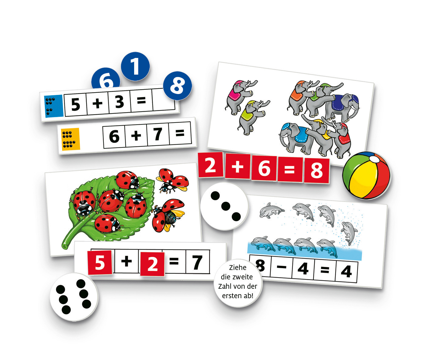 Rechnen Viele Rechenspiele - systematisch aufgebaut- führen das Kind vom Nachlegen anschaulicher Rechenaufgaben, über das Zuordnen von Rechenaufgaben zu Mengenbildern, bis hin zum Rechnen mit Hilfe von abstrakten Mengen. Die 16 wunderschön gezeichneten Bildtaf...