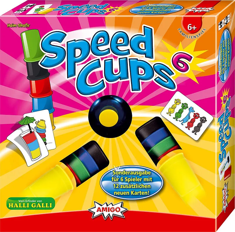 Die Sonderedition für bis zu 6 Spieler des beliebten Topsellers Speed Cups! Bei diesem rasanten Aktionsspiel treten nun bis zu 6 Spieler gegeneinander an. Die Karten geben vor, ob die Cups gestapelt oder nebeneinander angeordnet werden. In welcher Reihenfolge ...