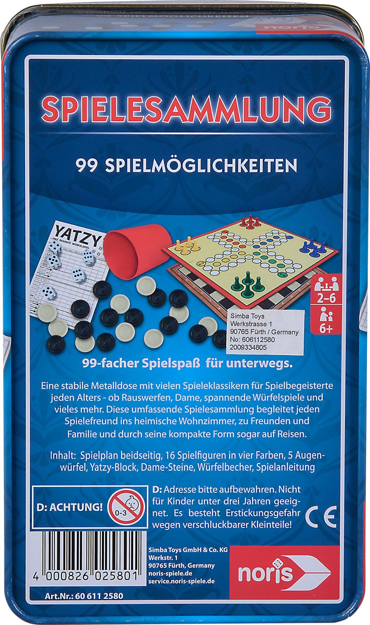 99iger-Spielesammlung in Metallbox Ein attraktive und handliche Spielesammlung mit vielen Spiele- Klassikern in der Metall-Box. Auf engstem Raum sind hier zusammensteckbare Spielpläne und viel Spielmaterial untergebracht, so dass man u.a. folgende beliebte Kla...