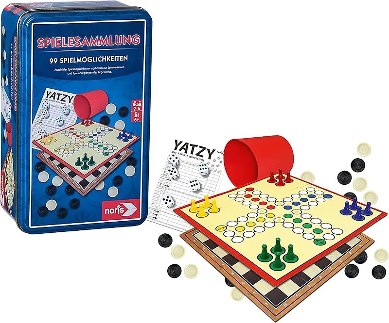 99iger-Spielesammlung in Metallbox Ein attraktive und handliche Spielesammlung mit vielen Spiele- Klassikern in der Metall-Box. Auf engstem Raum sind hier zusammensteckbare Spielpläne und viel Spielmaterial untergebracht, so dass man u.a. folgende beliebte Kla...