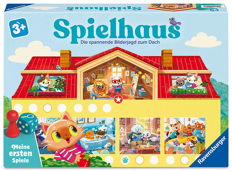 Bei diesem großen Kinderspiel-Klassiker geht es um eine spannende Bilderjagd durch alle Zimmer bis zum Dach. Auch in dieser liebevoll gestalteten Neuauflage ist in allen Räumen ganz viel los: Da machen zwei Katzenkinder mit ihren Eltern eine Kissenschlacht, do...