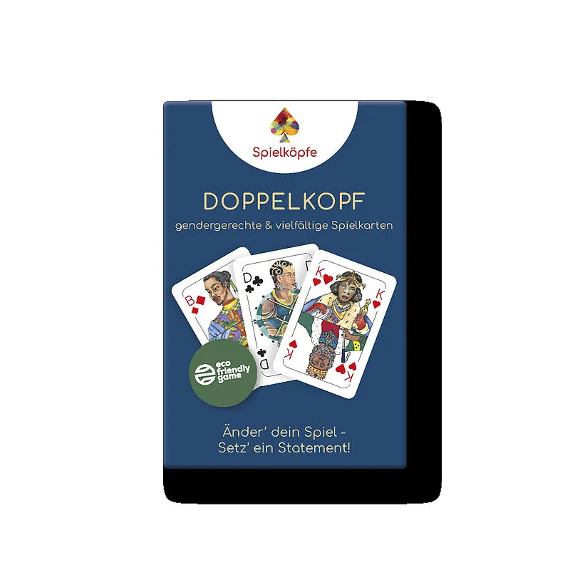 Doppelkopf - gendergerecht, vielfältig und nachhaltig Das gängige Doppelkopf-Deck neu aufgelegt - geschlechtergerecht, vielfältig und nachhaltig. Nach Cradle2Cradle Standard hergestellt - 100 % recyclingfähig und ohne Plastik. Neben dem König gibt es auf der K...